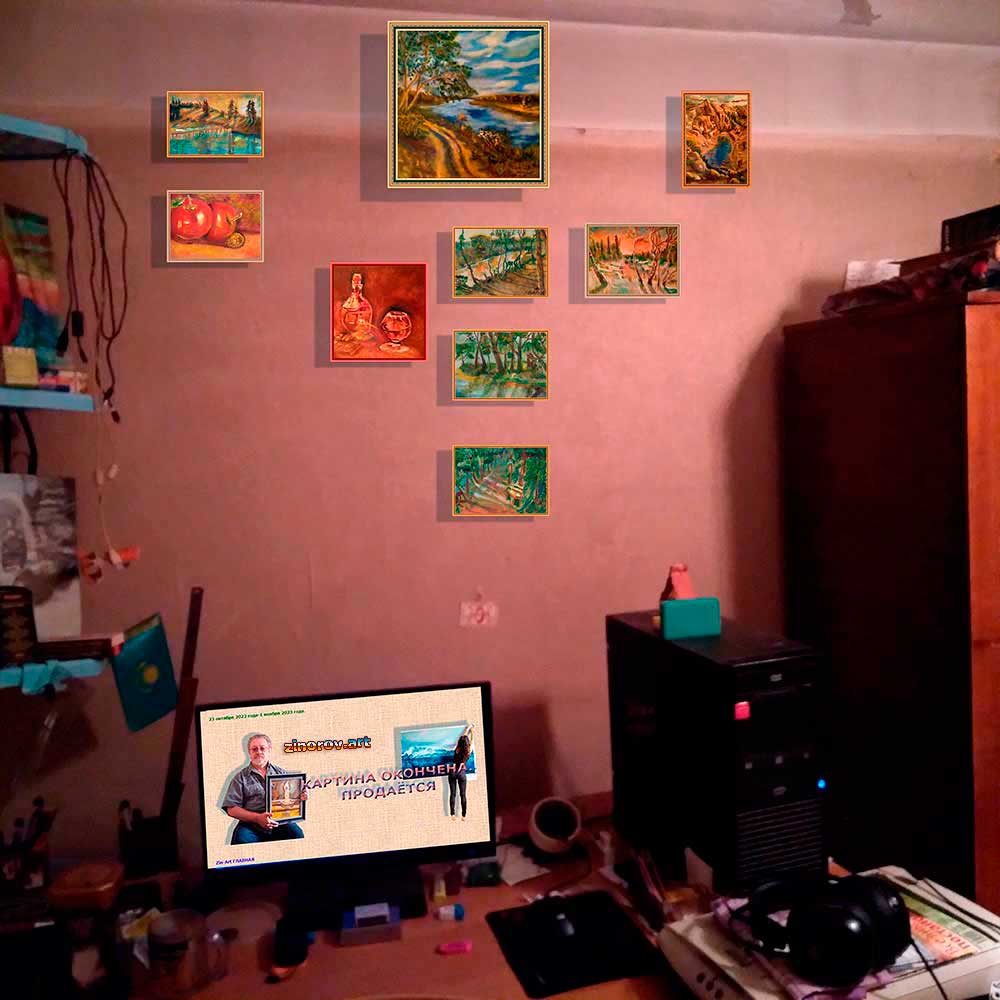 Однако, в декабре 15 числа года 2020, поставил я панель перед собой на этюдник, взял в руку правую, не парализованную кисть, и, всё что не получалось все эти годы, стало ложиться в красках на панели так хорошо, как я об этом и не мечтал. Оглядел я полустанок тот пустой и решил, – буду получать удовольствие от процесса творения живописного. А если и ещё кому-то понравится моя живопись, – здорово! А если ещё и купят, так мне будет на что расходники приобретать да дожить до окончания очередной картины. За пять лет и зим втянулся, 3-5 часов в сутки за мольбертом да за этюдником, стало мне здоровья прибавлять, веру в людей и жизнь возвращать. Сайт-визитку, как видите я создал, 15 января 2026 года в Сеть выложил. Добро пожаловать!